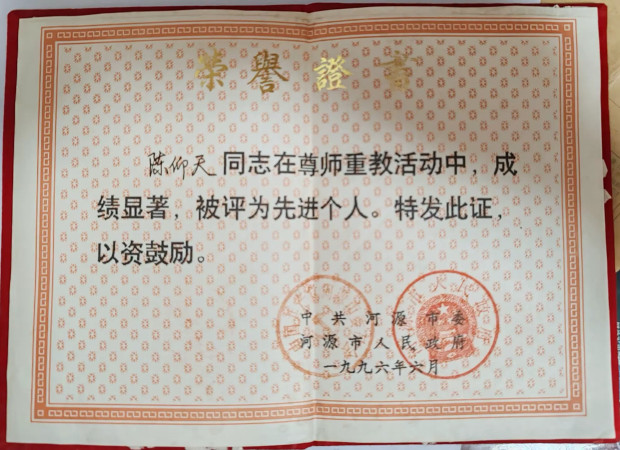 “河源市尊师重教先进”、